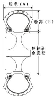 B:輪胎高寬比(扁平率)H/W 為90%。